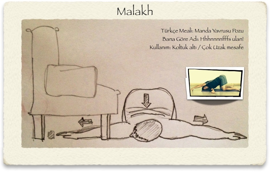 Aşağıda savımı ispatlayan -ki unutmayalım, ben her zaman haklıyım- ilüstrasyonlar var. Bulabildiğimin Sanskritçe adını ve Türkçe mealinininininin yanında kanımca anlamını ve oyuncağın konumsal durumuna göre kullanım tarzını belerttim. İsmini bulamadığımı arkamdan uydurdum, artık hangisi hangisi onu size bırakıyorum. İnanmazsınız diye bi de en yakın gerçek yoga pozunun da resmini iliştirdim. Daha ne yapiiim?