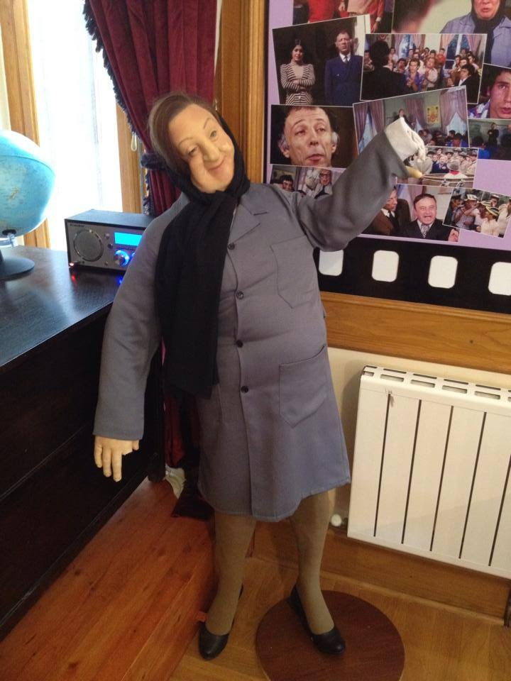 Arayı hızlı geçiyorum, çıktık korudan geldik müzeye. O arada arkadaşlarımız da geldiler, hep beraber önce müzeye girelim dedik. Yolda topladığımız elmaları gösterdik onlara, ama vermedik. Ben yicem hepsini evde. Müzenin (daha doğrusu sınıfın) kapısında 6-A Edebiyat yazıyor. Biz tabi direkt duygu seli. Girişte, yerde teknolojik bir galoş makinası var. O ne lan, diyebilirsiniz, ben de anlamadım ilk önce ne olduğunu. Arkadaş biliyormuş o söyledi. Böyle büyük bir alet, plastik folyo sürüyor dışarı doğru, ayağını bastırıyosun ayı gibi, çevresinden sıcak hava üfleyip plastiğin ayakkabının etrafında büzülmek suretiyle bir galoş, eeeh neyse ne işte. Önümüzde bi abla topuklu ayakkabı giymiş, gayet doğal, ama makina buna göre tasarlanmamış. Bir süre kıkırdayarak ablanın makinayla mücadelesini seyrettim. Bir ayak oldu, diğeriyle daha fazla uğraşamadı ve topuğundan sarkan plastik parçasını hırrş hırrş diye ayağıyla sürüyerek girdi sınıfa. Sınıfın içinde mumdan Hafize Ana, İnek Şaban filan var. Temsili. Hafize Ana’nın resimini facebook sayfasında paylaştım, buraya da koyuyorum. Boyu posu, kıyafeti tamam ama yüzü Hansel Gretel’deki kötü cadının ablasına benzetmişler. Sağ elin işaret parmağını koparıp sol bileğinde önlüğün koluna tıkıştırmışlar. Zaten çan tutan sol eli komple yok. Hafize Ana’ya bu yapılır mı be? Kızdık çıktık.